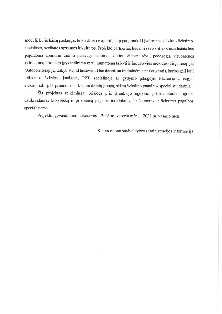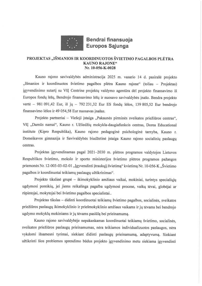 PROJEKTAS „IŠMANIOS IR KOORDINUOTOS ŠVIETIMO PAGALBOS PLĖTRA KAUNO RAJONE“ Nr. 10-056-K-0028