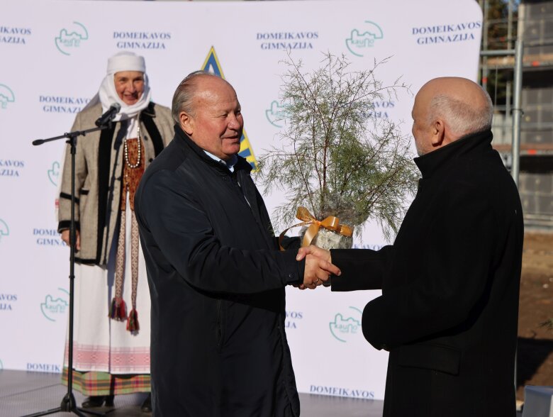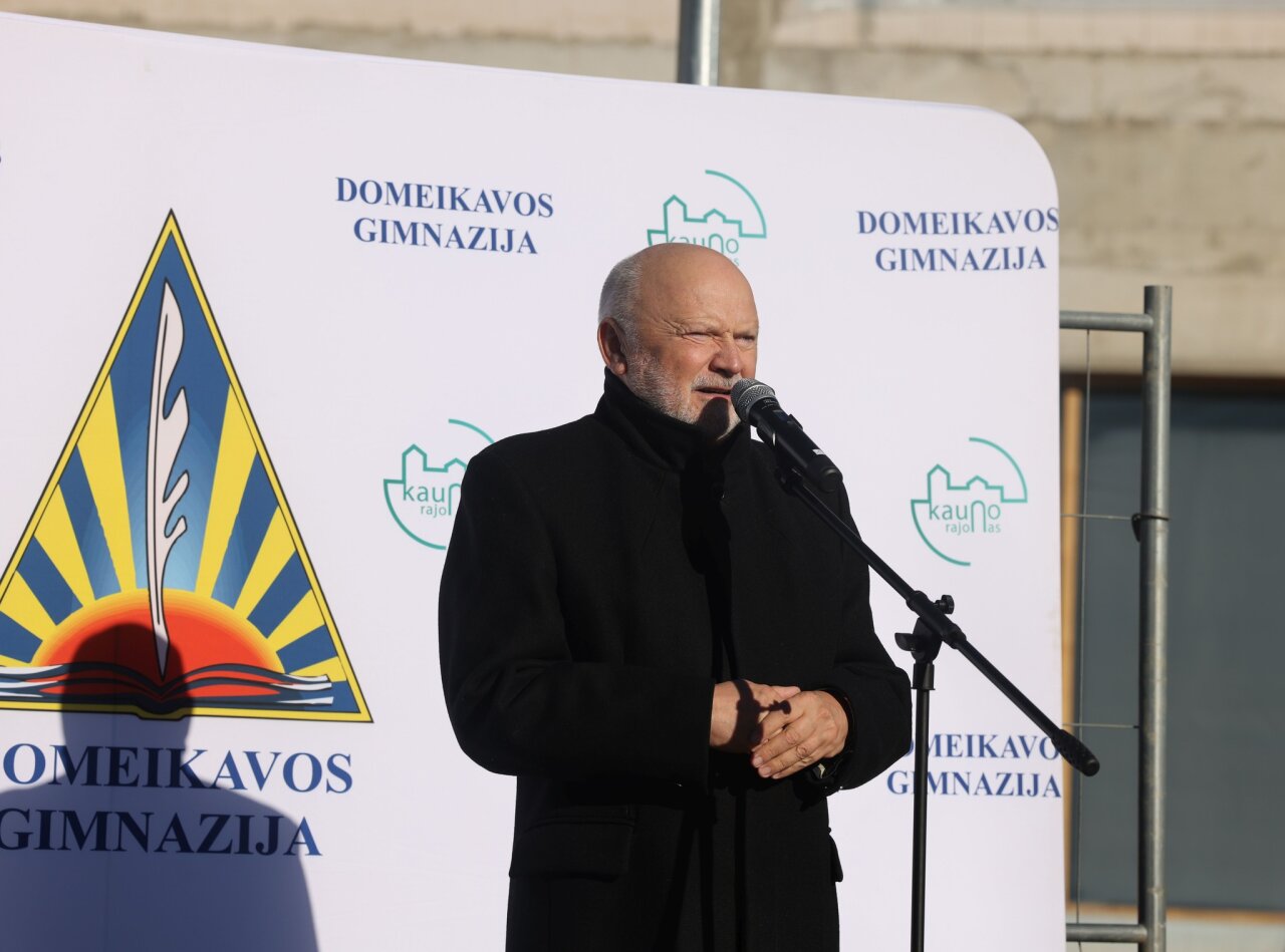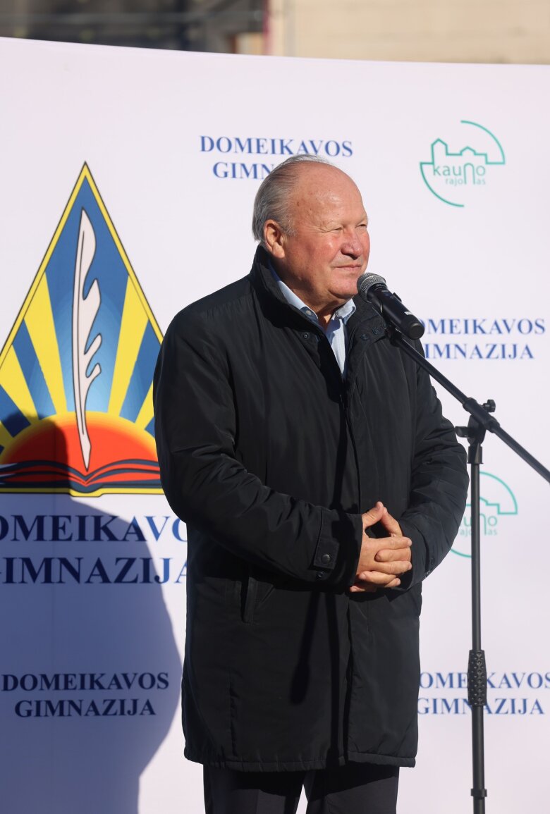 „Atrodo, visai neseniai čia įleidome kapsulę, pradėdami Domeikavos pradinės mokyklos statybas. Lietuviai turi gražias tradicijas, o vainiko kėlimo šventė – viena iš jų. Ji primena, kad esame pasiekę svarbų etapą. Šiandien užbaigti pagrindiniai konstrukcijų ir stogo darbai, todėl norisi padėkoti visiems, kurie prie to prisidėjo – rangovui, projektuotojams, konstruktoriams, mokyklos vadovui ir visai bendruomenei“, – sakė Kauno rajono savivaldybės meras Valerijus Makūnas, atvykęs prie naujai iškilusio pastato.