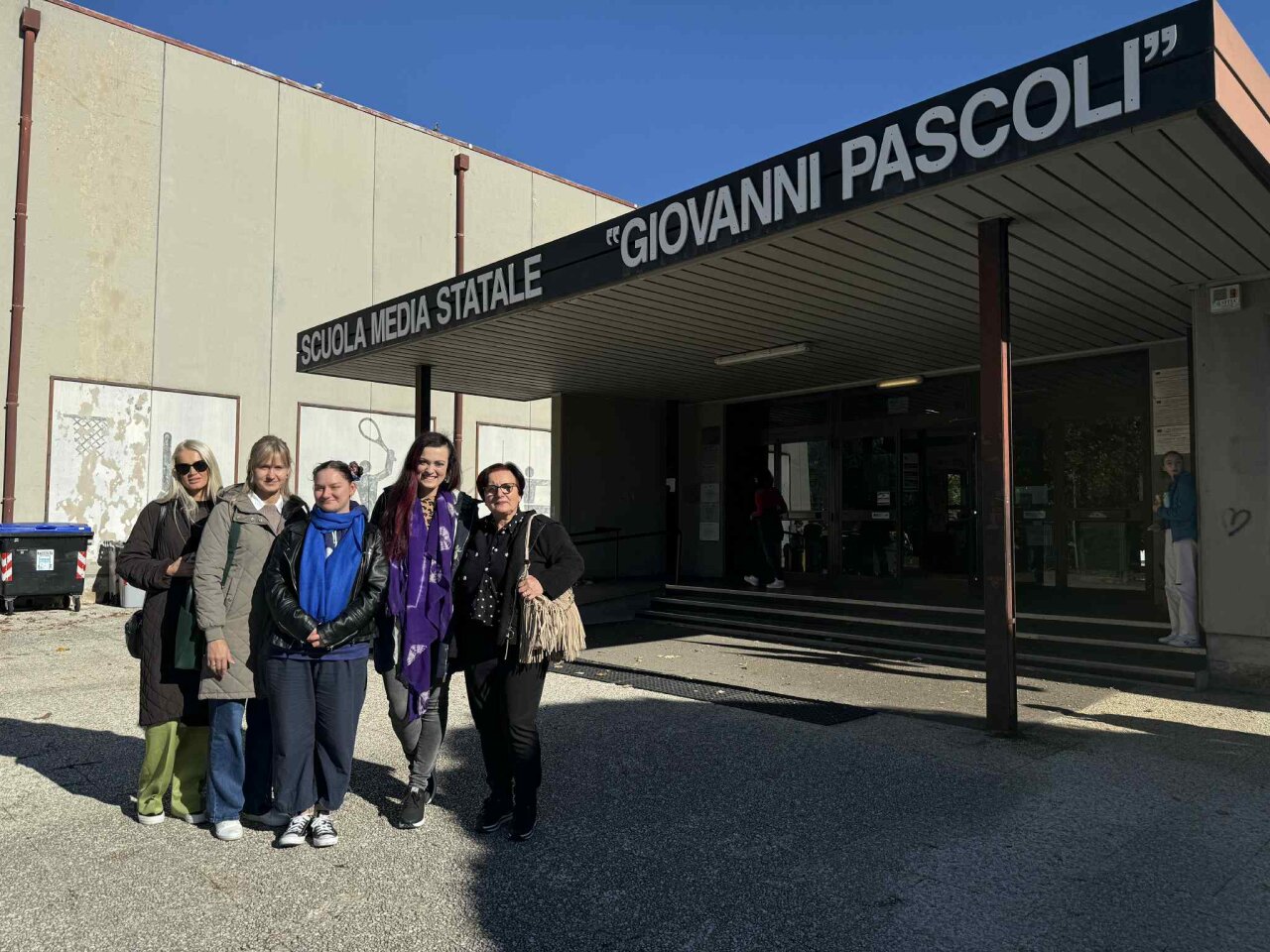 Įtraukiojo ir meninio ugdymo stebėsenos vizitas Scuola Secondaria di I grado “Alighieri Pascoli” (Italija) Praėjusią savaitę Domeikavos gimnazijos mokytojų komanda lankėsi Italijoje, Scuola Secondaria di I grado “Alighieri Pascoli” mokykloje. Vizito tikslas – susipažinti su pagrindinio, meninio ir įtraukiojo ugdymo organizavimu šioje ugdymo įstaigoje. Alighieri Pascoli yra meninės krypties mokykla, kuri išsiskiria savo struktūra: pirmoje dienos pusėje mokiniai dalyvauja kūrybinėse veiklose – piešia, tapo, groja muzikos instrumentais, o antroje dienos pusėje mokosi pagal bendrąsias ugdymo programas. Italijos švietimo sistema grindžiama lygybės, asmens orumo, laisvės ir demokratijos principais, ypatingą dėmesį skiriant kultūrinei bei religinei tolerancijai. Mokytojų tikslas – ugdymo procese integruoti pagrindines vertybes ir tikslus, ugdyti kalbines, matematines, mokslines, pilietines, kultūrines ir skaitmenines kompetencijas. Vis dėlto svarbiausias siekis – visapusiškas asmenybės ugdymas, kai mokiniai ne tik įgyja žinių, bet ir jaučiasi bendruomenės dalimi, turi galimybę augti, patirti sėkmę ir jaustis saugiai. Savo ruožtu, mokytojos papasakojo apie Lietuvą ir mūsų mokyklą, pristatė pagrindinius mokyklos ugdymo principus ir mokė mokinius tautinių šokių bei dalinosi informacija apie žymius Lietuvos menininkus. Vizito metu taip pat aplankyta ir profesinio ugdymo – kulinarinio profilio mokykla, kurią mokiniai gali rinktis baigę pagrindinio ugdymo programą (8 klases). 2025–2026 m. Italijoje vyksta Lietuvos kultūros metai, prasidėję šių metų spalio 5 d. Romoje, Quirinale rūmuose, inauguraciniu koncertu. Šią programą, kurią rengia Lietuvos kultūros institutas ir Lietuvos ambasada Italijoje, sudaro renginiai, apimantys vizualiuosius menus, teatrą, muziką, kiną, literatūrą ir kitas kultūros sritis. Jų tikslas – stiprinti Lietuvos ir Italijos kultūrinius ryšius. Tokia ypatinga proga Castellio miestelyje buvo surengtas koncertas Lietuvai ir Domeikavos gimnazijai pagerbti. Kartu su vietos bendruomene klausėmės įvairių muzikos kūrinių, susitikome su miesto meru ir džiaugėmės galimybe pažinti jaunuosius šio miestelio talentus.
