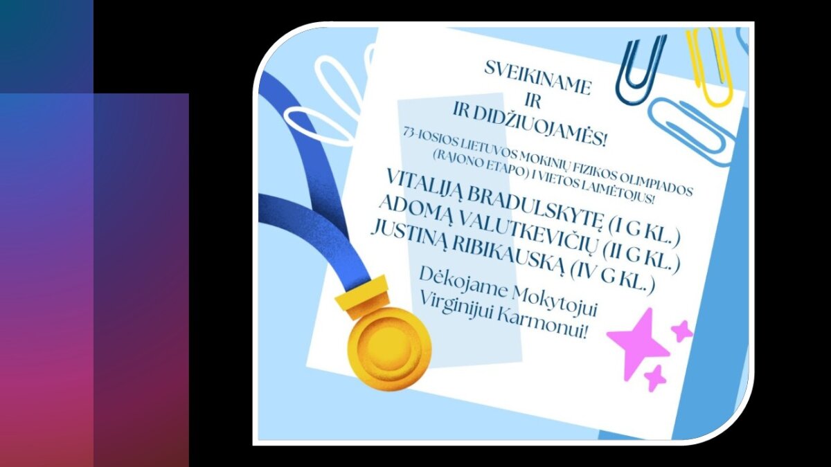 Sveikiname 73-iosios Lietuvos mokinių fizikos olimpiados (rajono) etapo I vietos laimėtojus