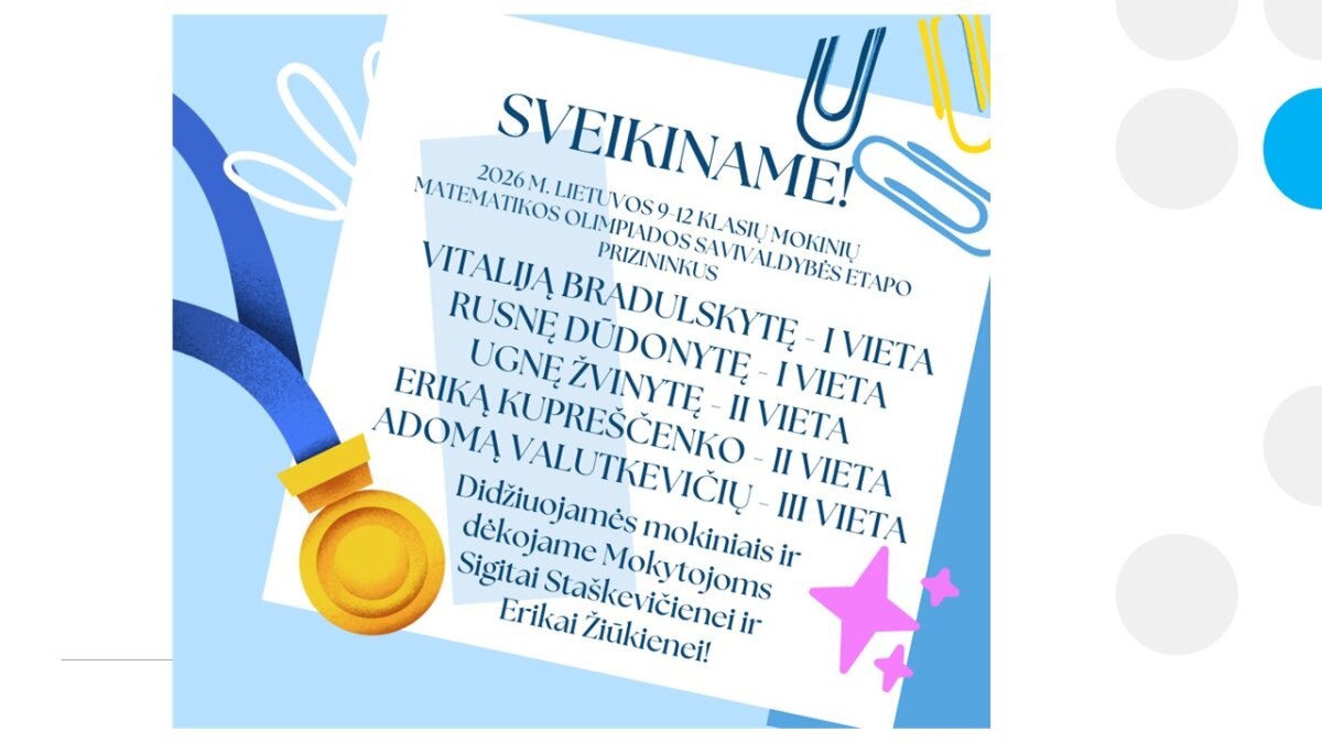 Didžiuojamės olimpiados prizininkais!