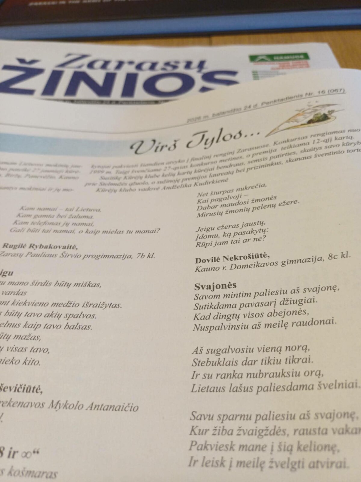 Džiaugiamės ir didžiuojamės mūsų mokyklos mokiniais Jokūbu R. 7b ir Dovile N. 8c, dalyvavusiais Lietuvos mokinių jaunųjų poetų kūrybos konkurse „Raktažolė“. Mokinių kūryba buvo pastebėta ir įvertinta – Jokūbas ir Dovilė buvo atrinkti bei pakviesti į finalinį šventinį konkurso renginį. Jame jaunieji kūrėjai pristatė save, skaitė savo poeziją, klausėsi kitų mokinių kūrybos ir tapo gražios lietuviško žodžio šventės dalimi. Renginio metu buvo apdovanoti konkurso laimėtojai ir įteikta dvyliktoji Mažoji Pauliaus Širvio premija geriausiam jaunajam poetui. Mūsų mokiniai iš renginio grįžo be galo laimingi, kupini įspūdžių, įkvėpimo ir kūrybinio džiaugsmo.