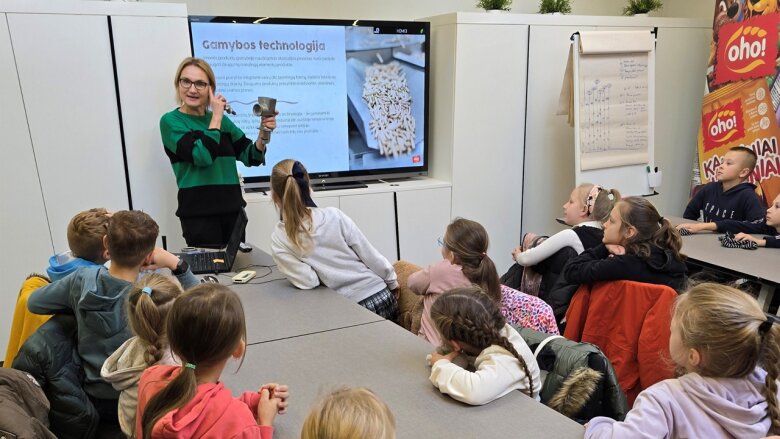 Spalio 21 d. 2d klasės mokinukai svečiavosi didžiausioje Baltijos šalyse sausų pusryčių bei užkandžių gamybos įmonėje UAB ,,OHO GROUP".