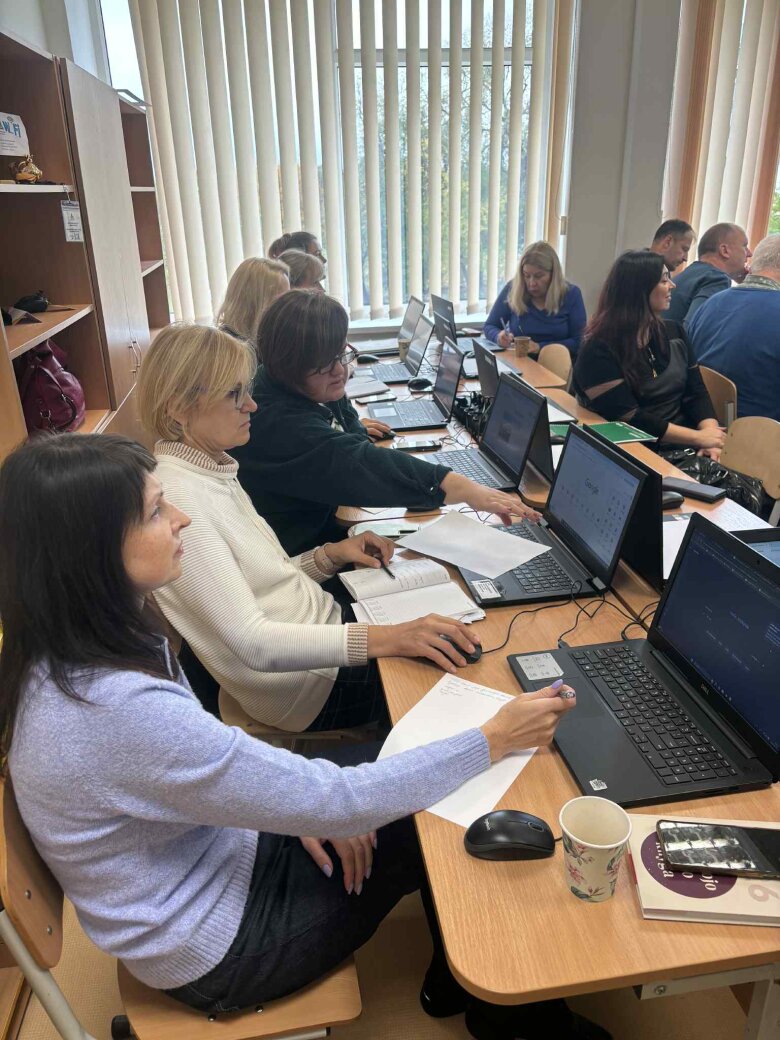 Spalio 24 d. IT specialistai Skaistė Grigelytė-Leonavičienė, Arnoldas Leonavičius ir lietuvių kalbos bei literatūros mokytoja Edita Gudžiūnienė pakvietė kolegas į praktinius mokymus „Suplanuok pamoką per kelias minutes!“
