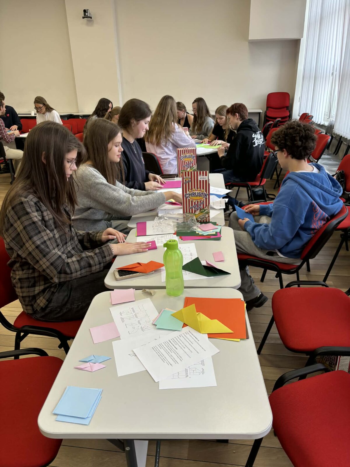 Mokymasis netradicinėse erdvėse tapo vienu ryškiausių šios savaitės akcentų. Integruotos istorijos ir anglų kalbos pamokos vyko ne tik klasėse, bet ir Kauno senamiestyje – mokiniai dalyvavo kūrybinėse užduotyse, tyrinėjo miestą bei mokėsi per patirtį. STEAM veiklų metu jie gilinosi į kristalų ir metalų „magiją“, o fizikos, matematikos ir inžinerijos žinias pritaikė statydami spagečių tiltus ir kurdami origami.