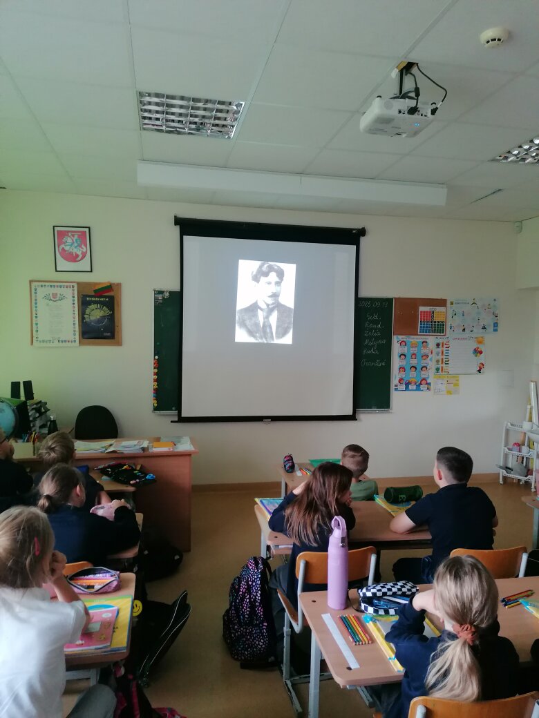 Rugsėjo 22 d. pirmoji pamoka gimnazijoje buvo skirta M. K. Čiurlionio 150-ąjam gimtadieniui. Jos metu bendruomenė buvo pakviesta į prasmingą kelionę po iškilaus lietuvių menininko gyvenimą ir kūrybą, skatinant atrasti, kaip dailininko kūriniuose dera muzikalumas, simbolika, vizualumas, harmonija, darna ir ritmas. Vieni mokiniai, atlikę paiešką internete, rinko žinias apie Čiurlionį, domėjosi jo tapyba ir muzika, o surinktą informaciją sudėjo į simbolinę knygą, kiti - vaizduojamojo meno veikloje atkartojo Čiurlionio paveikslus, juos interpretuodami brėžiant ar komponuojant geometrines figūras, treti - žiūrėjo dokumentinį filmą, kuris leido ne tik pažinti biografijos faktus, bet ir pajusti kūrėjo pasaulėjautą, klausėsi Čiurlionio kvarteto c-moll, kurio garsų įkvėpti mokiniai sukūrė kūrybinį projektą „Spalvų orkestras“.
