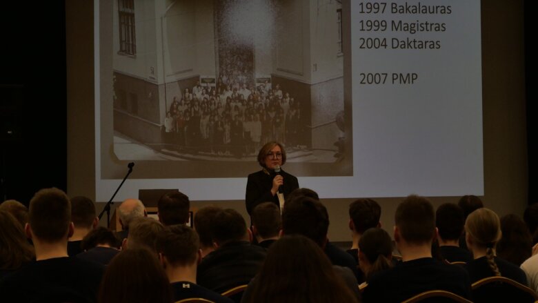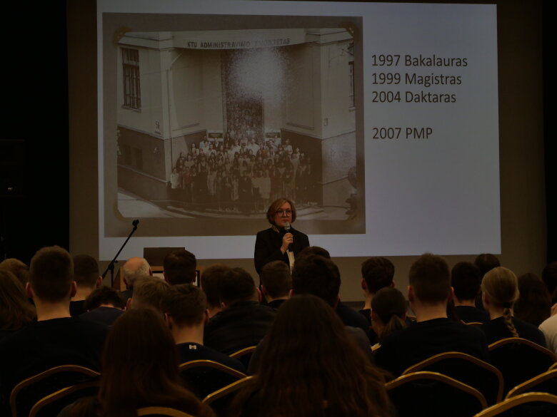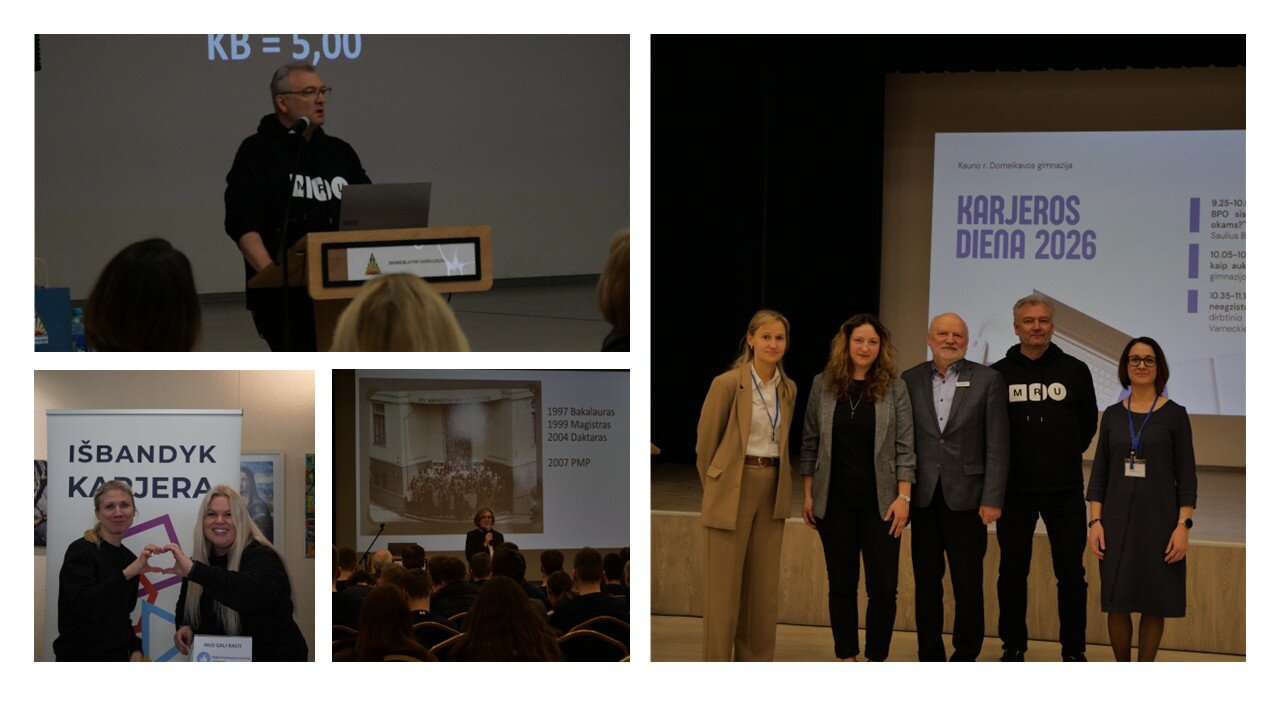 Karjeros dienos metu mokiniai klausėsi įdomių ir informatyvių pranešimų. Apie prašymo pildymą LAMA BPO sistemoje ir svarbiausius aspektus abiturientams pasakojo MRU Priėmimo grupės vadovas Saulius Bugailiškis. Savo asmenine karjeros patirtimi dalijosi gimnazijos alumnė dr. Renata Urbonė, kvietusi mokinius ieškoti savo kelio „kaip aukso“. Taip pat pranešimą skaitė finansų, technologijų ir dirbtinio intelekto specialistė Julija Varneckienė, kuri pabrėžė, kad dalis ateities profesijų dar net neegzistuoja.