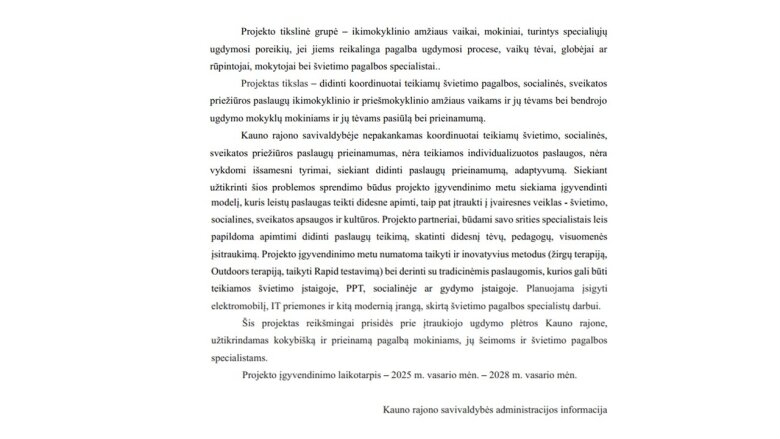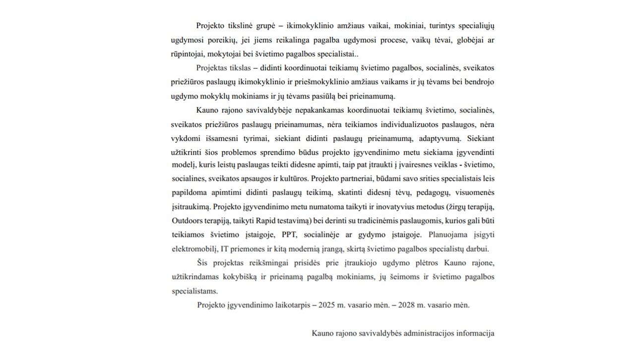 PROJEKTAS „IŠMANIOS IR KOORDINUOTOS ŠVIETIMO PAGALBOS PLĖTRA KAUNO RAJONE“ Nr. 10-056-K-0028